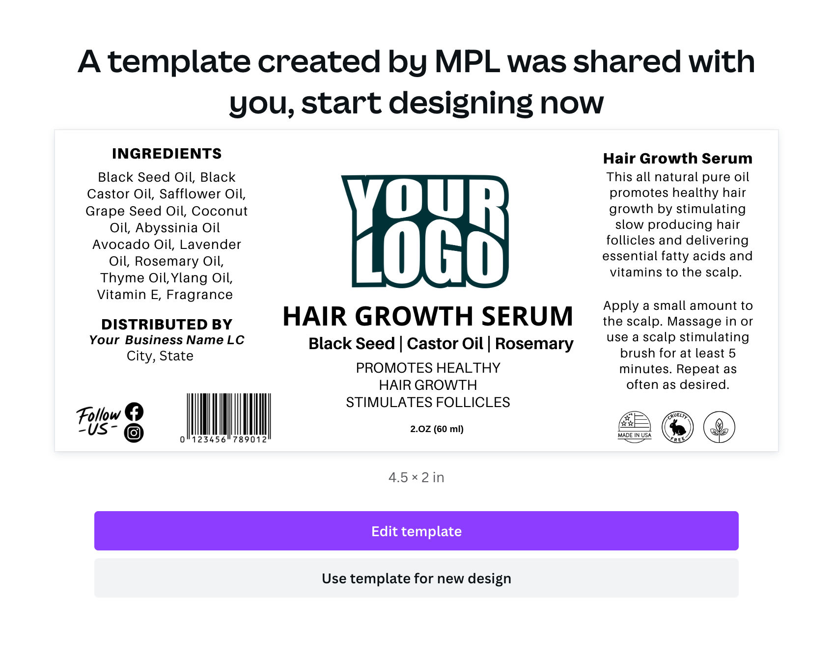 Hair Growth Oil Label Template